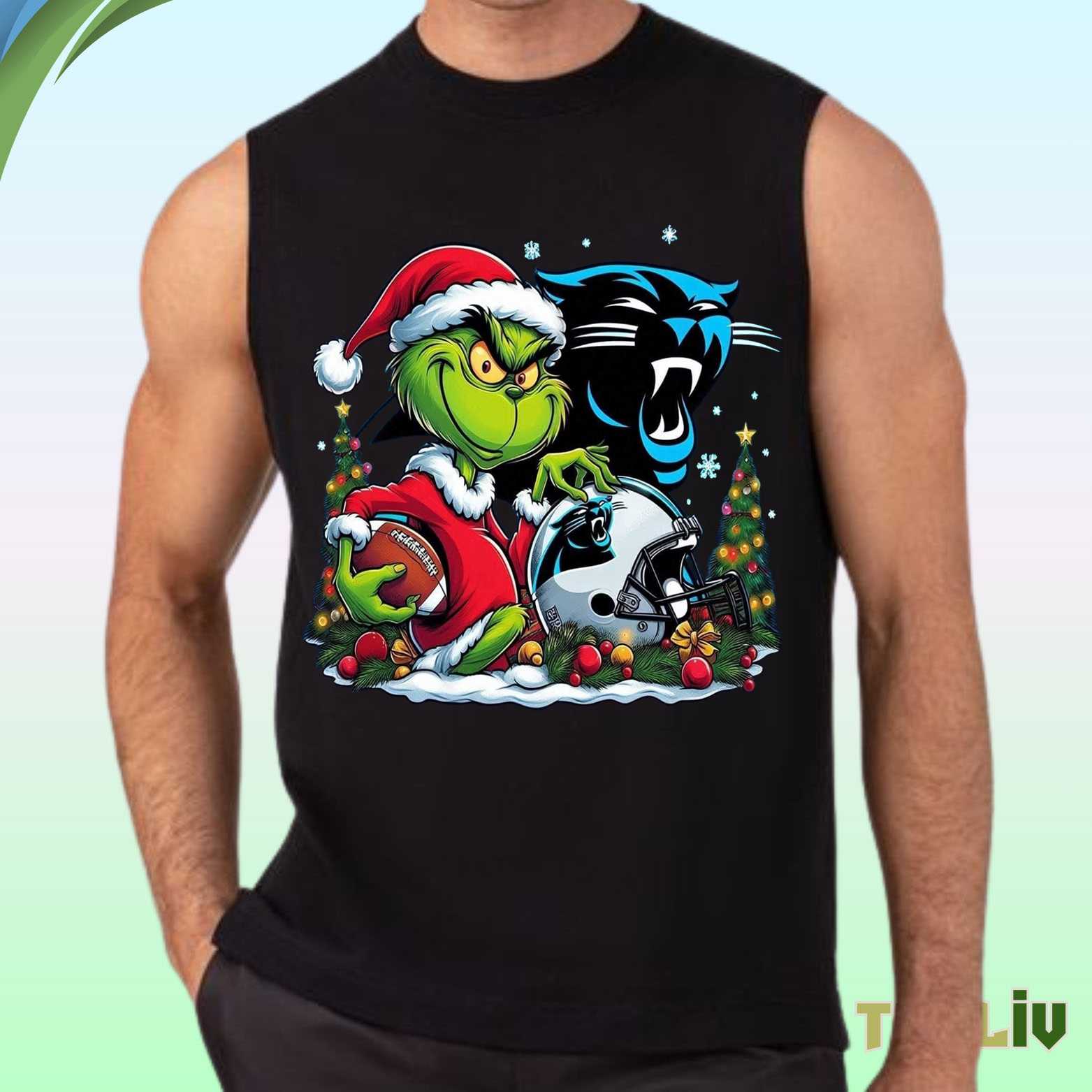 Product Information "Carolina Panthers Grinch Christmas T Shirt - Holiday Fan Merch"