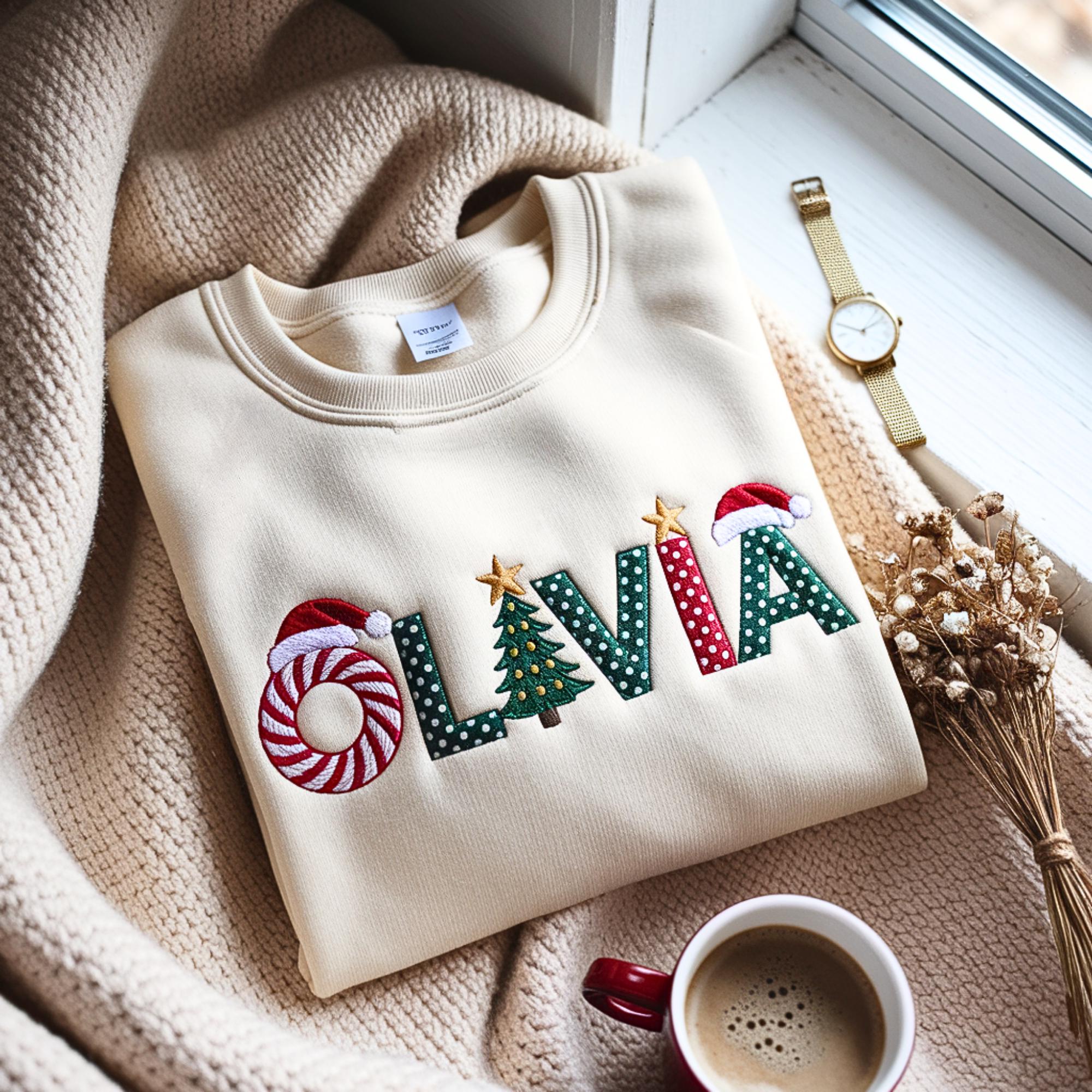 Product Information "Christmas Icons Custom Name Embroidered Design - Festive Personalized Sweatshirt"