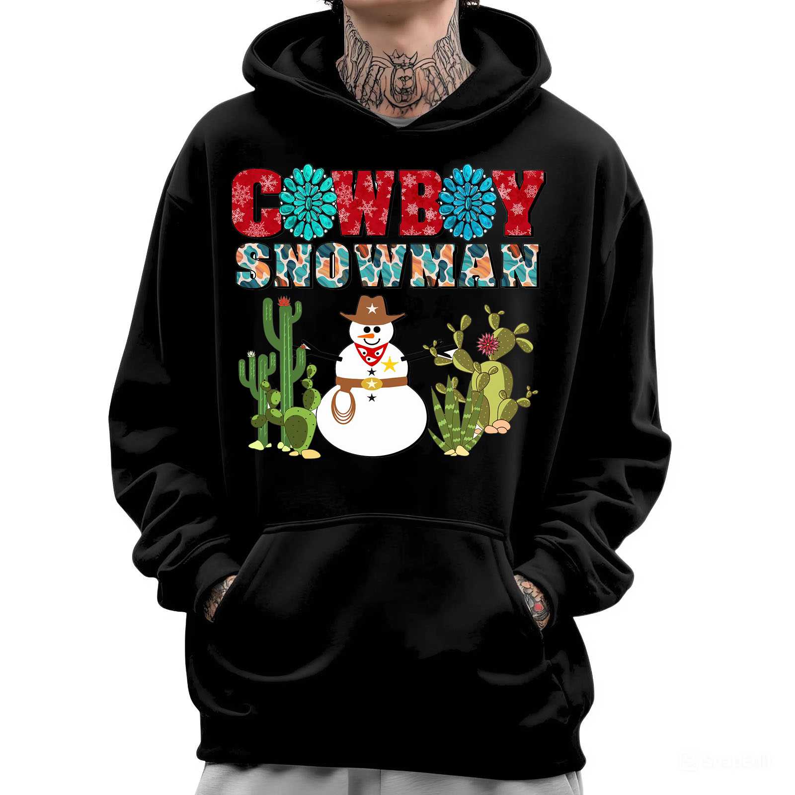 Cowboy Snowman Sweatshirt – Western Desert Holiday Crewneck