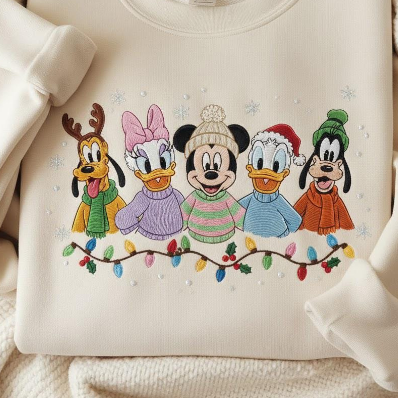 Product Information "Disney Crew Holiday Design - Cozy Lineup Embroidered Sweatshirt"