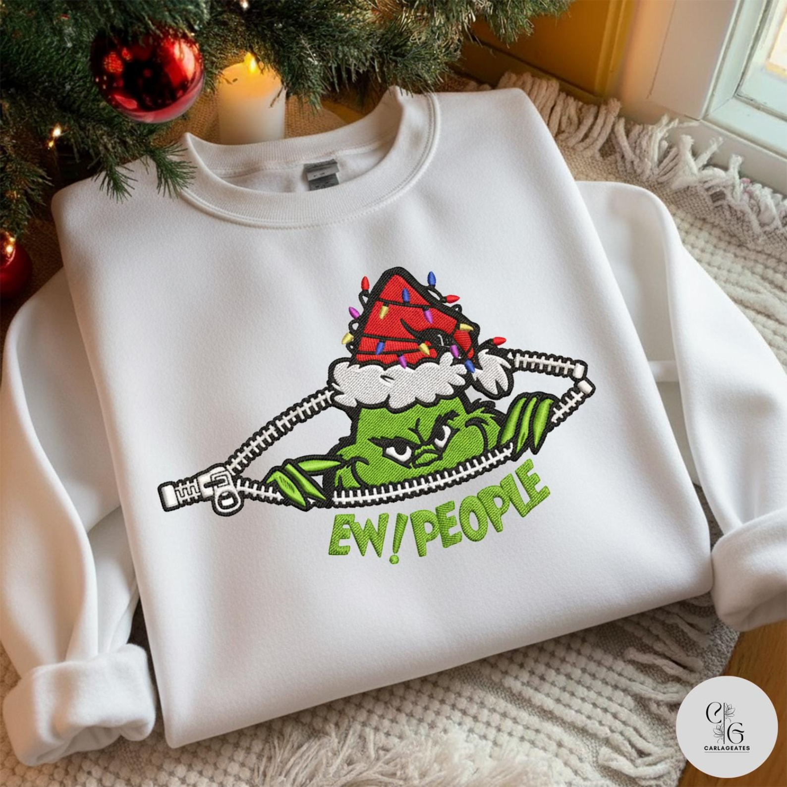 Product Information "Grinch Zipper Ew People Embroidered Design - Anti Social Christmas Sweatshirt"