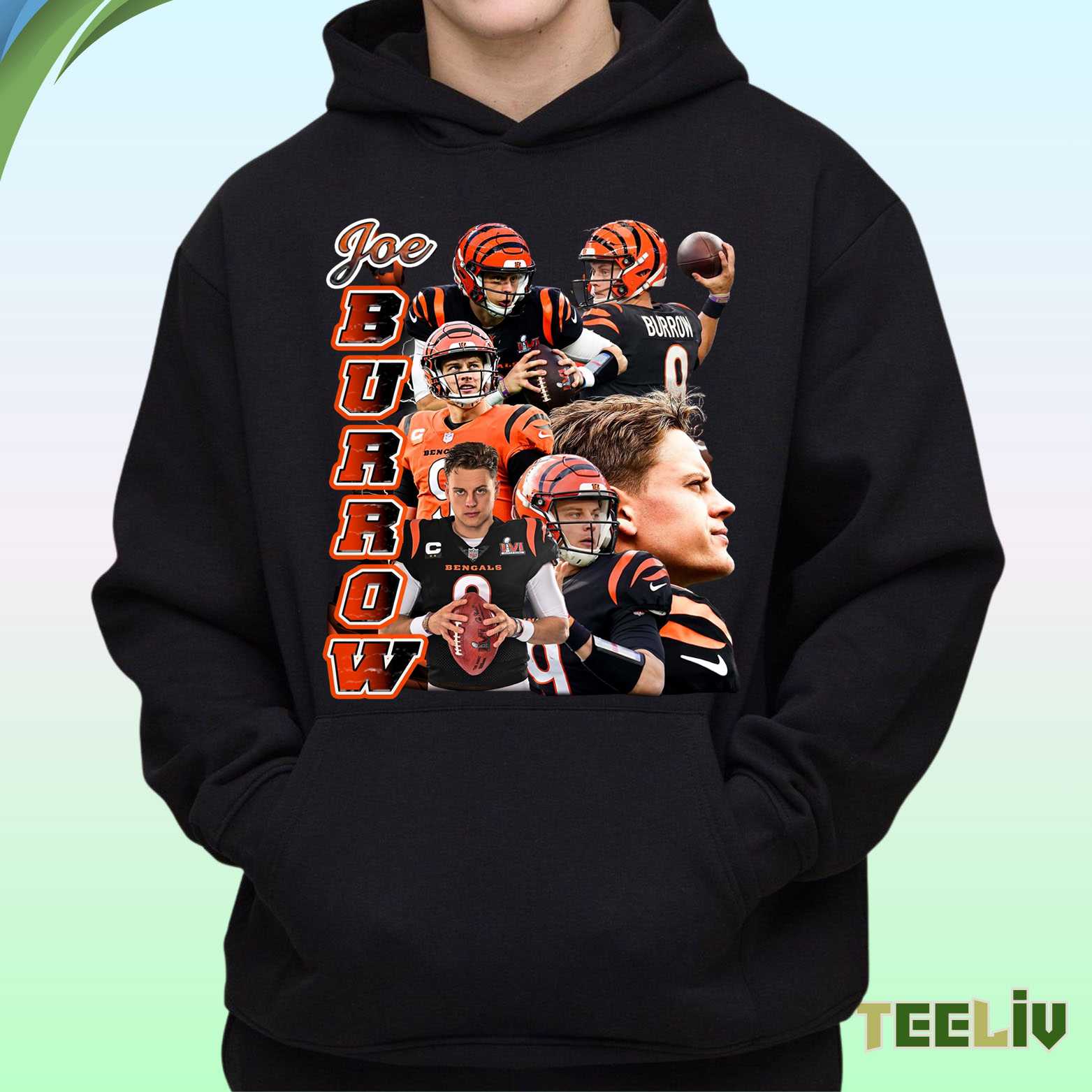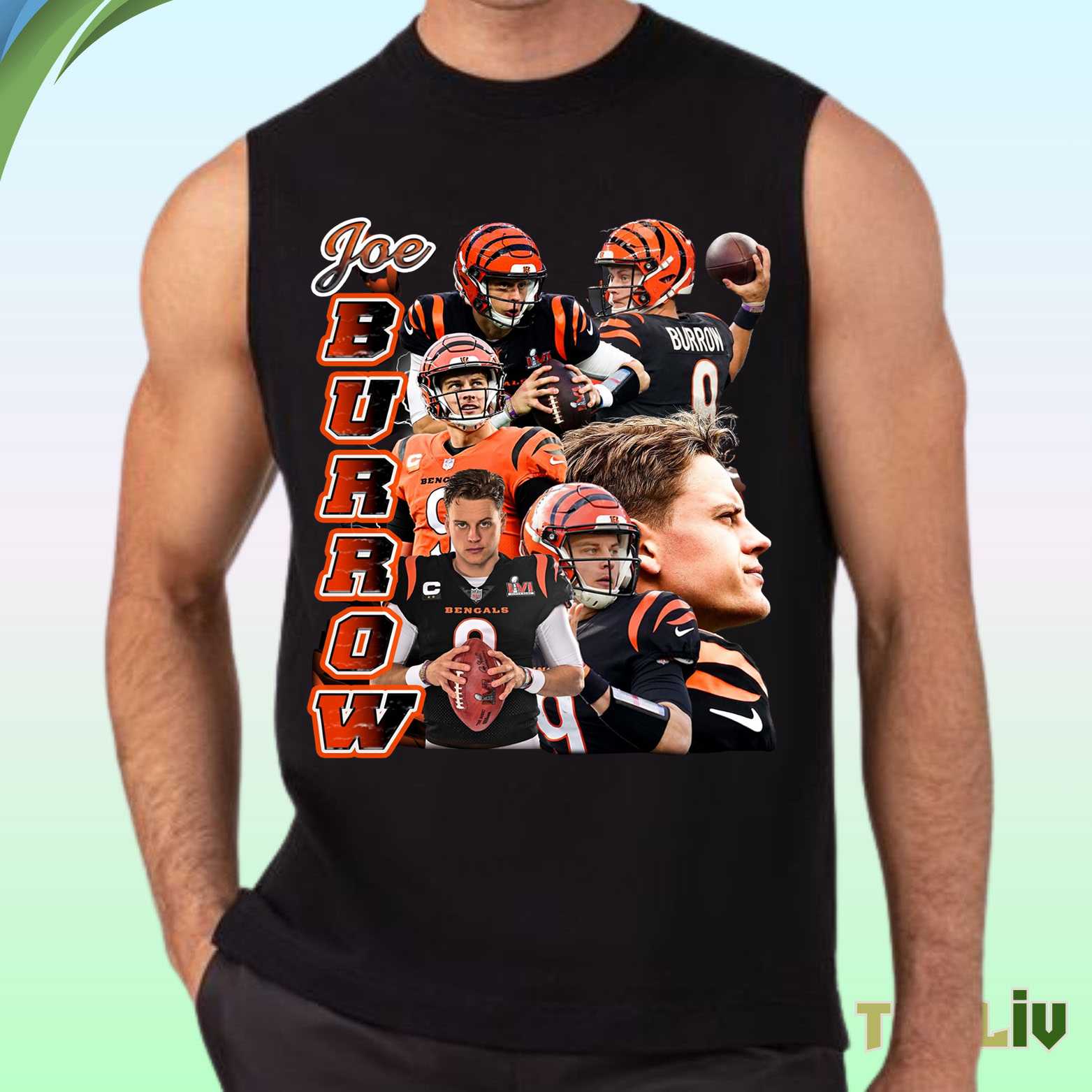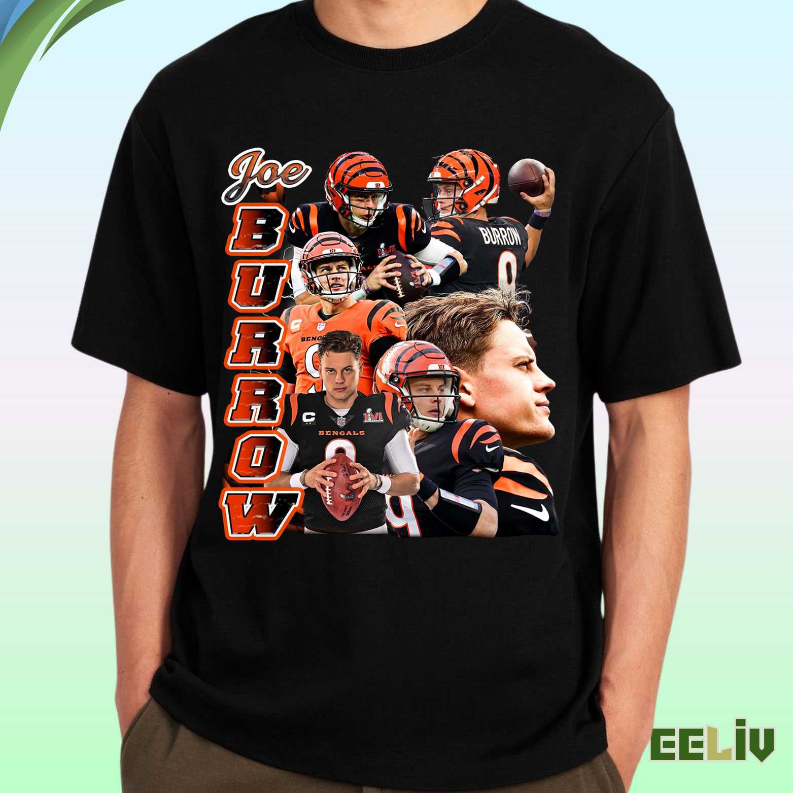 Product Information "Joe Burrow Bengals Vertical Collage Tee – Football Legend Shirt"