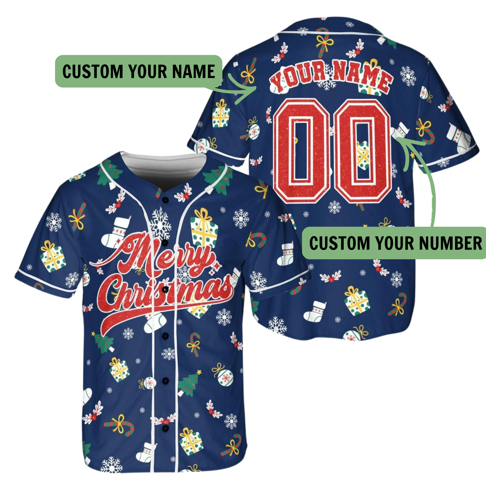 Product Information "Merry Christmas Custom Name & Number - Festive Pattern Baseball Jersey"