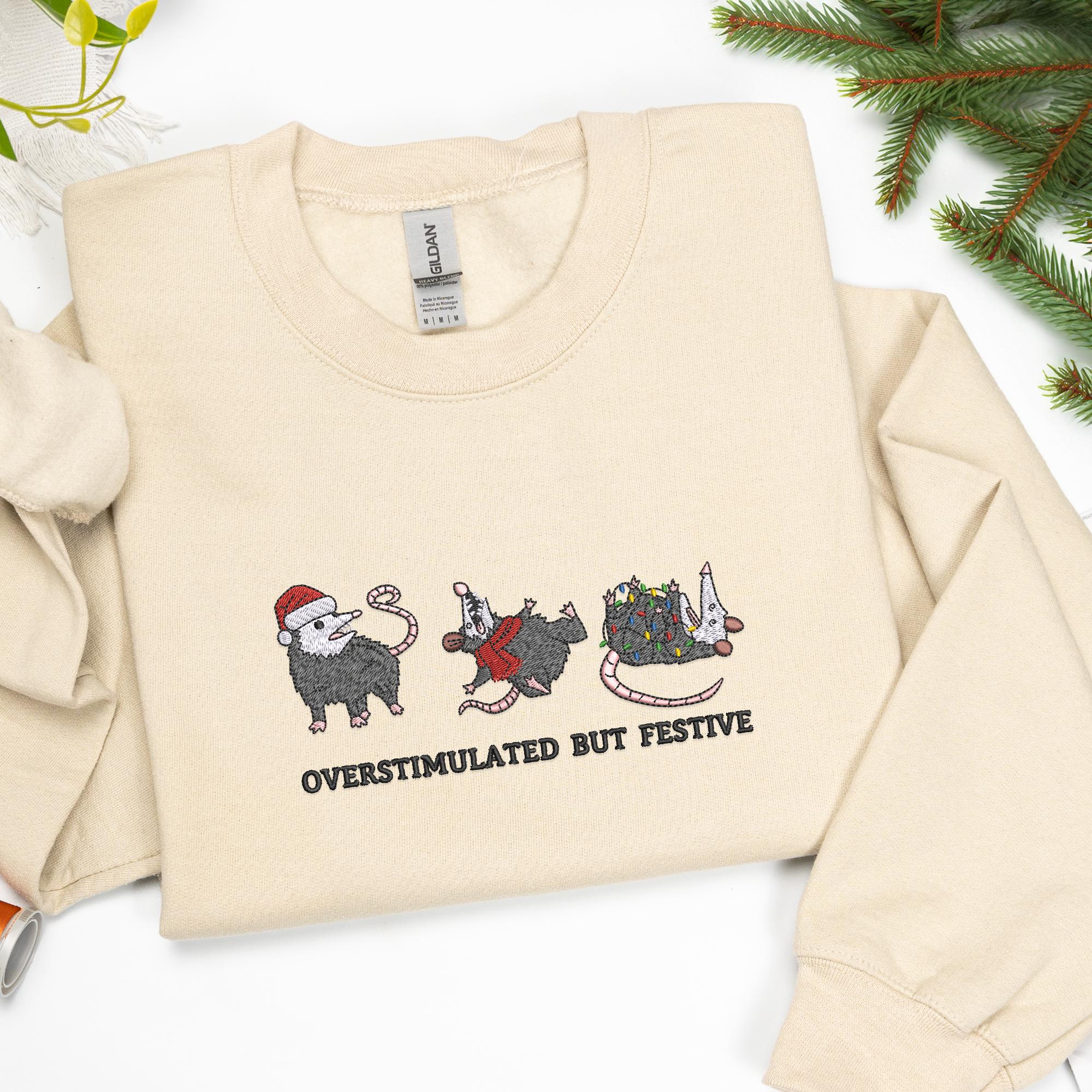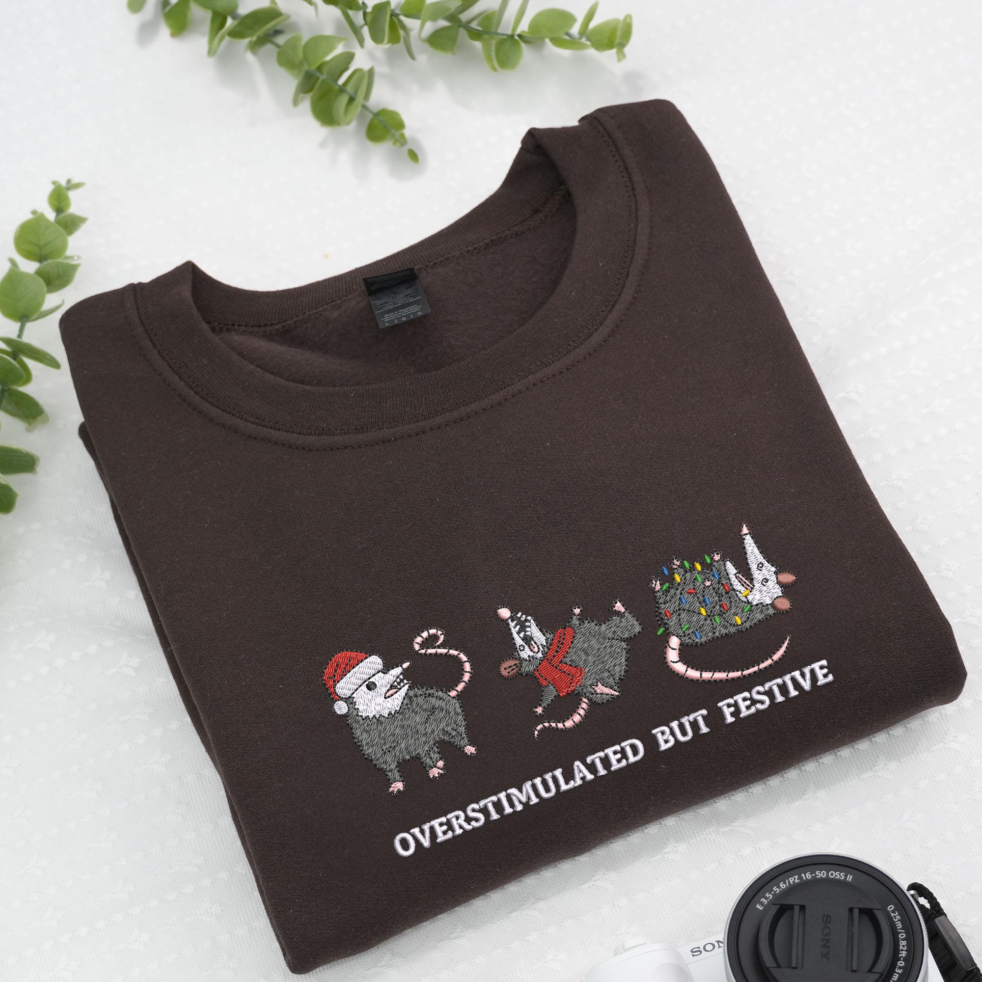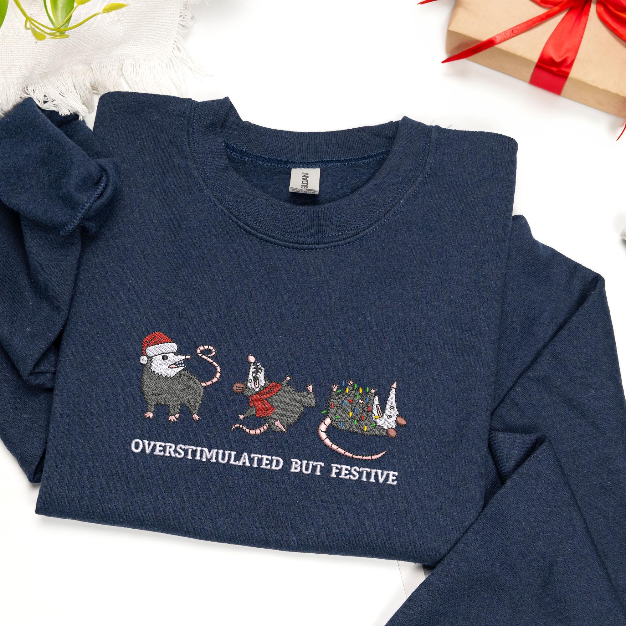 Opossum Holiday Embroidered Sweatshirt – Overstimulated Festive Possum Top