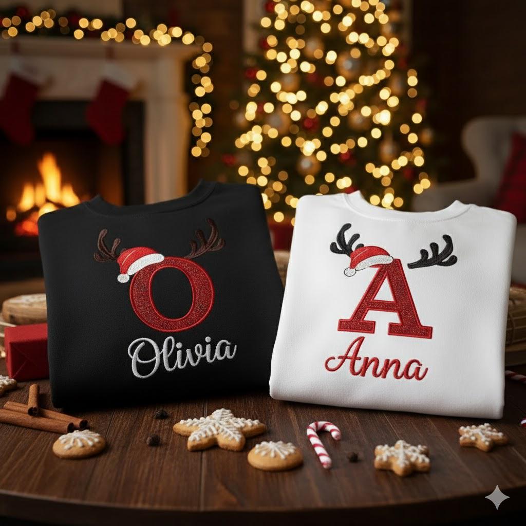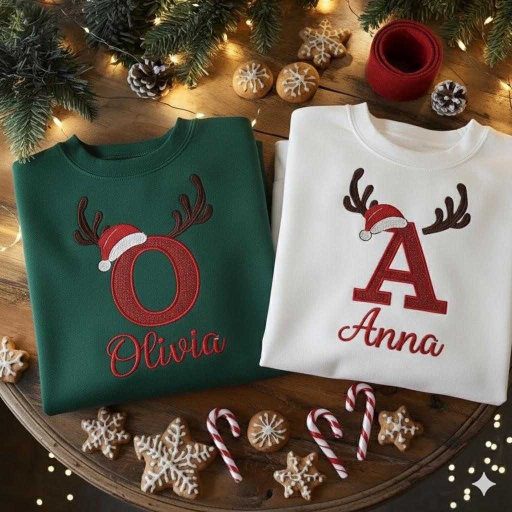 Reindeer Antlers Initial Embroidered Design – Custom Name Sweatshirt